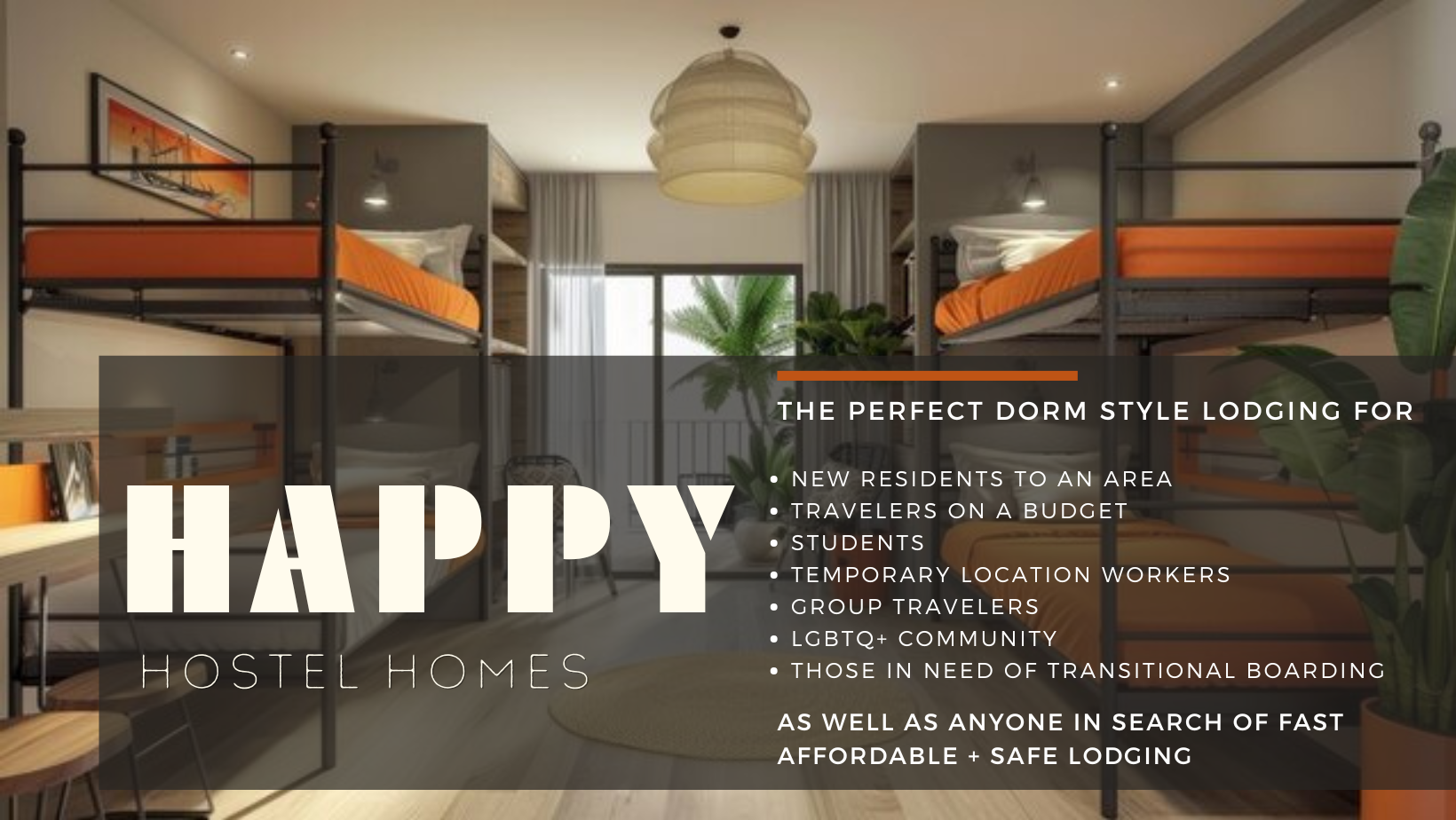 Since opening our first home, Happy Hostel Homes has provided unforgettable travel accommodations for individuals who are but not limited to being Veterans, Students, Seniors, Transitional Housing, Traveling Workers and many more!.